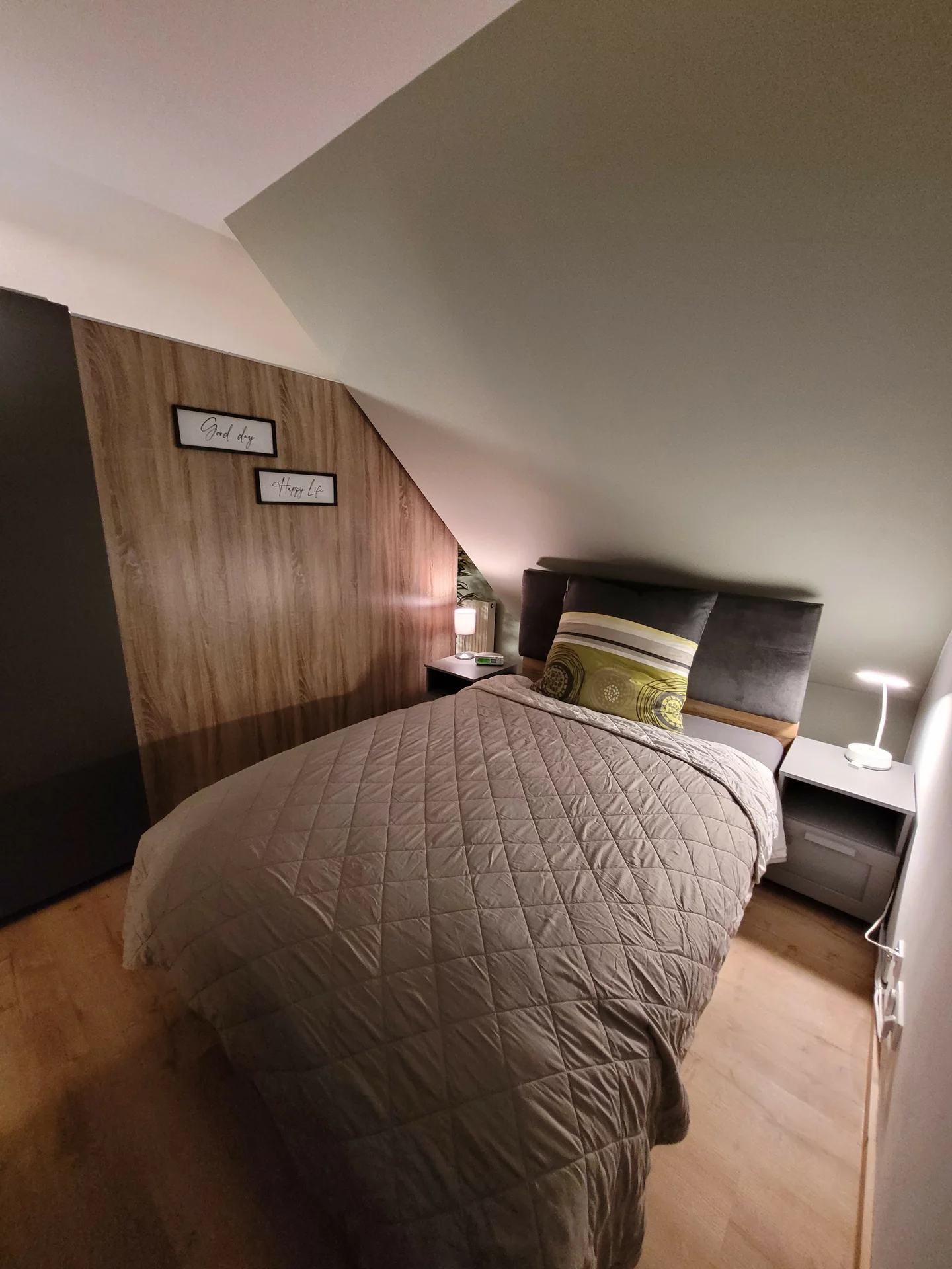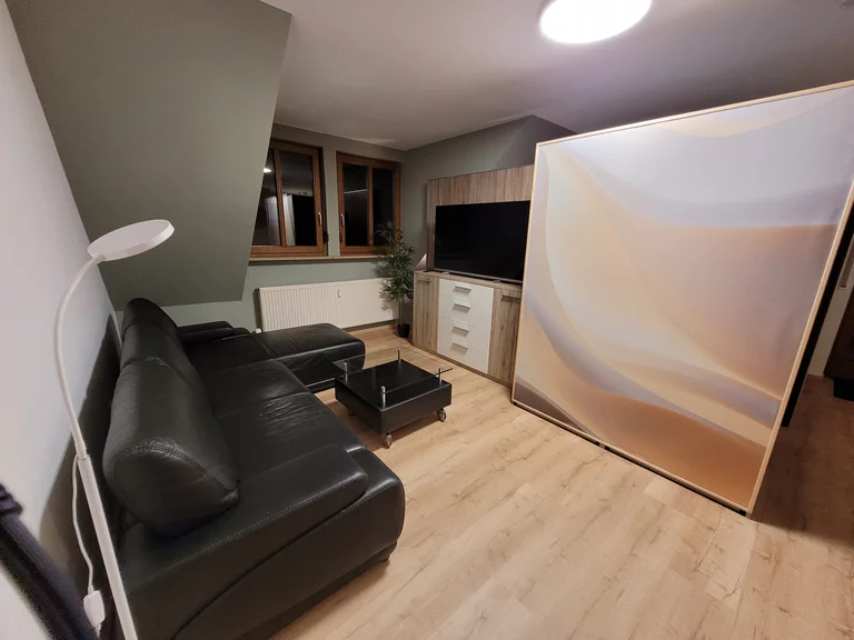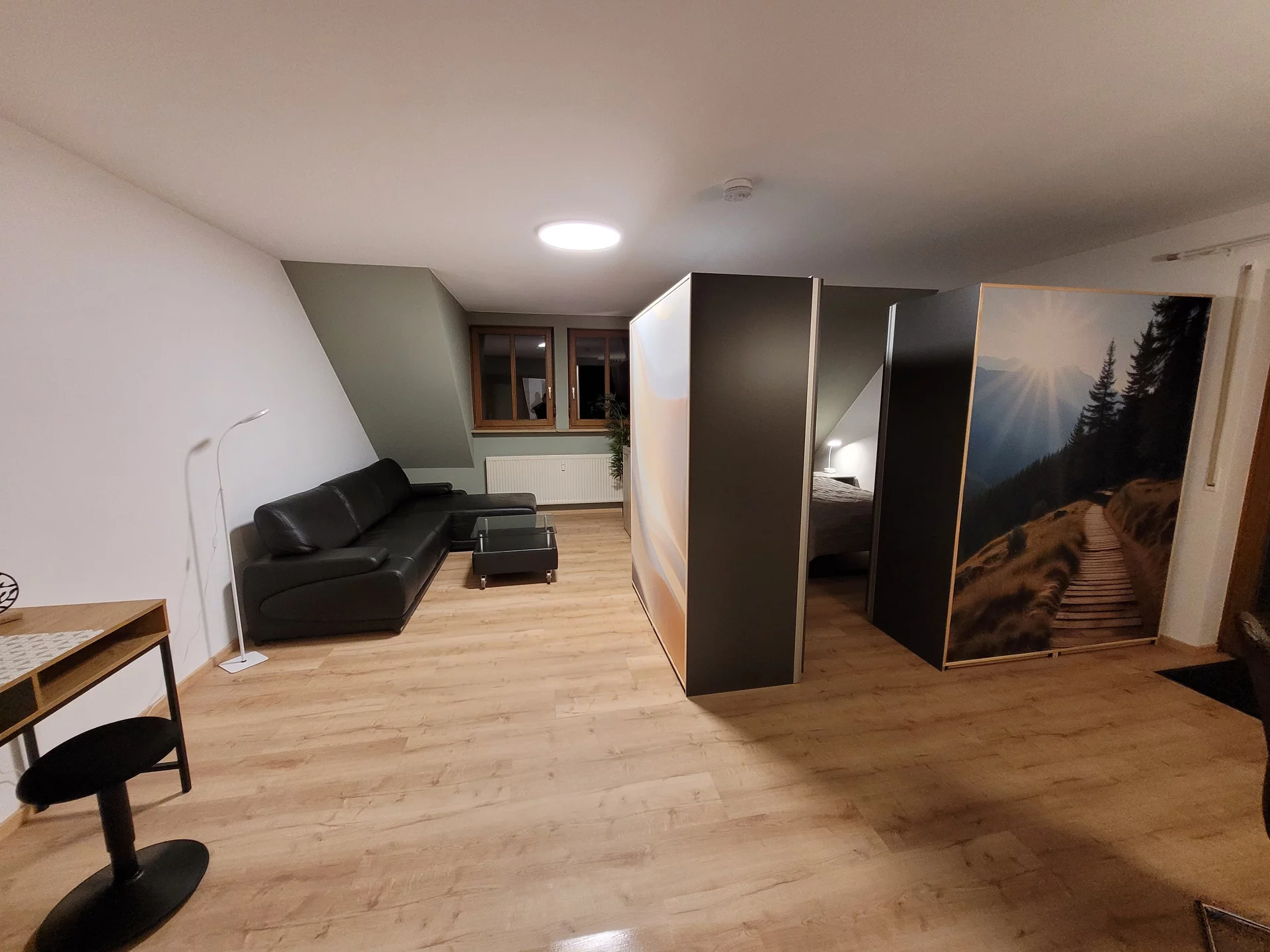 kombinierter Wohn-Ess-Schlafbereich mit 1 Doppelbett
