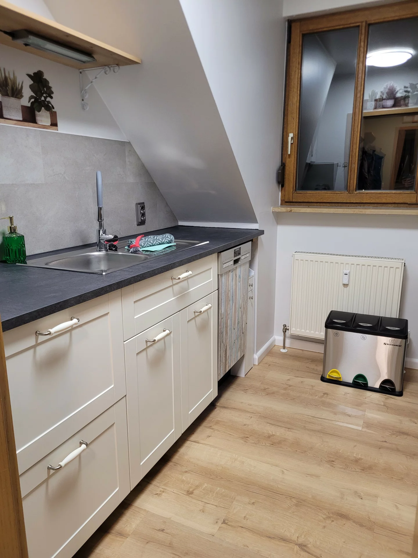 mit Gefrierfach, Geschirrspülmaschine und dem üblichen Zubehör